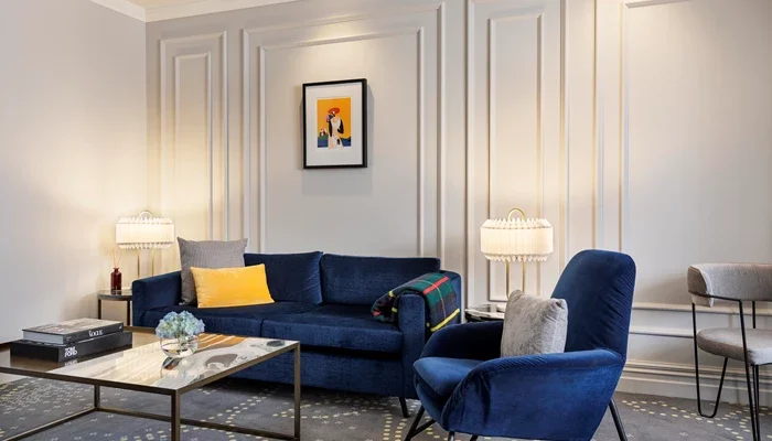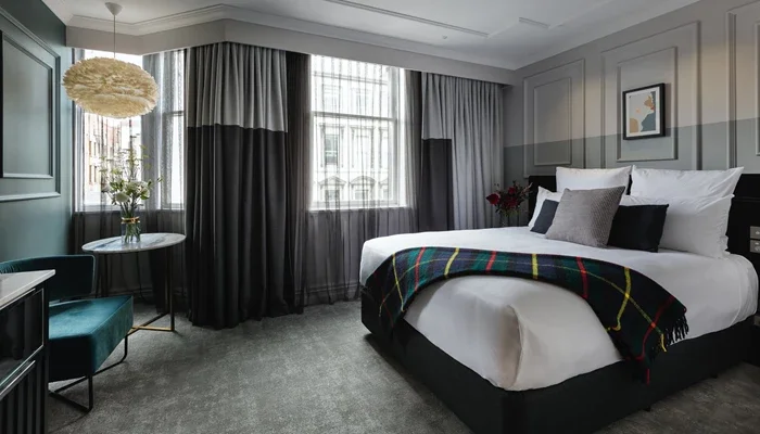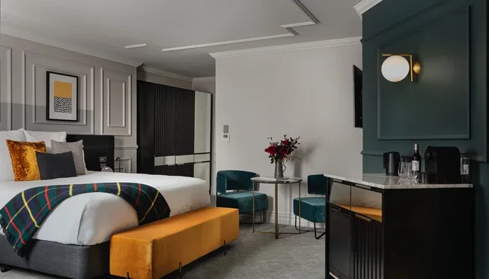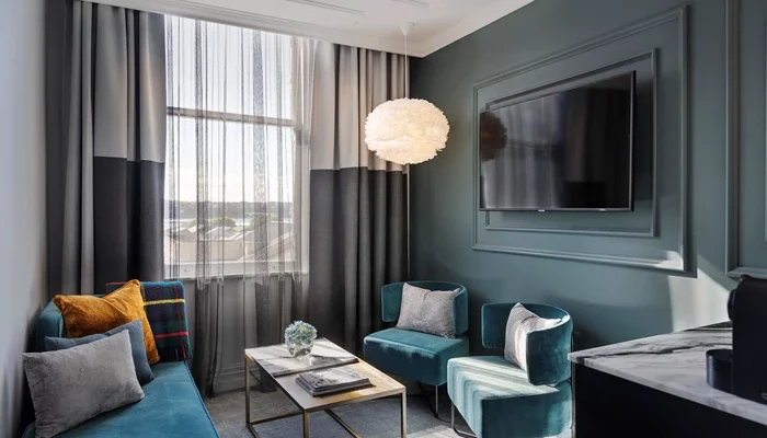 At 47 sqm, the Mason Suite combines contemporary luxury with heritage flair. Featuring a separate bedroom and lounge, this suite provides the perfect balance of space and elegance. Large windows overlook Princes Street, filling the room with natural light. Inside, guests will find refined furnishings, premium technology, and luxury details throughout. Ideal for those who want more space for entertaining or relaxing in comfort.