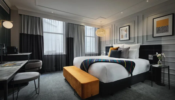The Superior Rooms, ranging from 20–31 sqm, provide a generous and refined space for both business and leisure travellers. Each room is designed with a sophisticated blend of contemporary furnishings and subtle heritage accents. Guests enjoy premium bedding, a smart TV, a work desk, and a modern ensuite with luxury amenities. The rooms are bright, airy, and thoughtfully appointed, offering a comfortable and stylish retreat. Perfect for couples, solo travellers, or those wanting extra space and comfort in the heart of Dunedin.