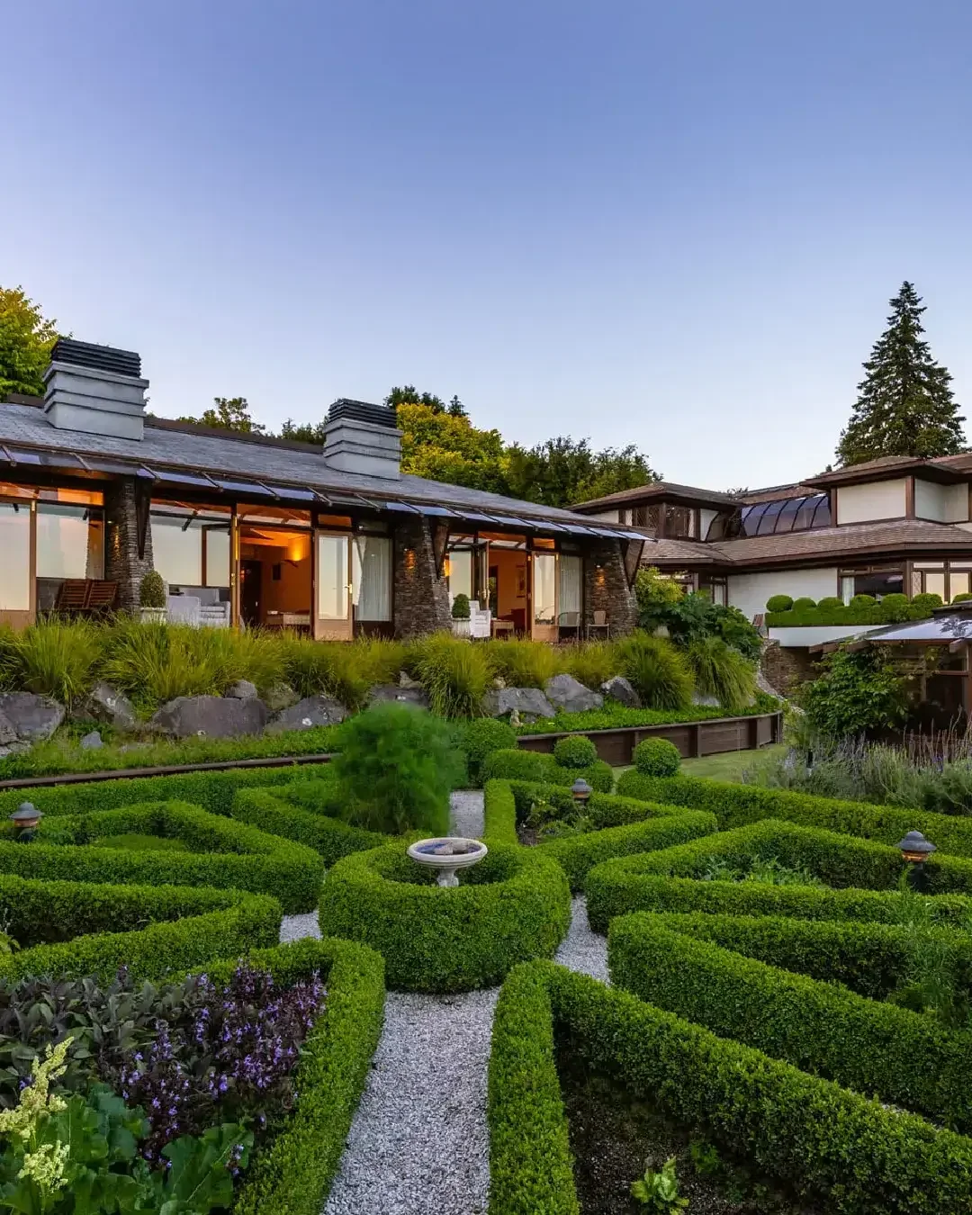 Private outdoor seating areas with lake or garden views