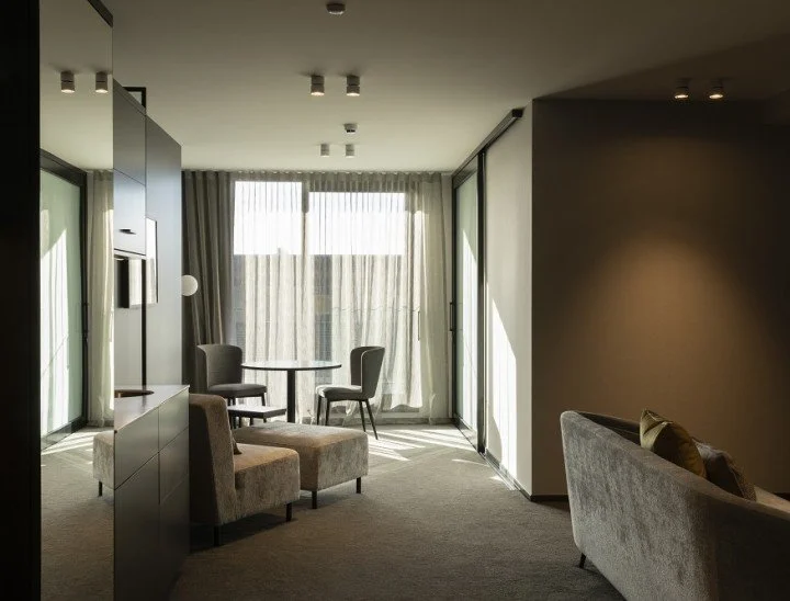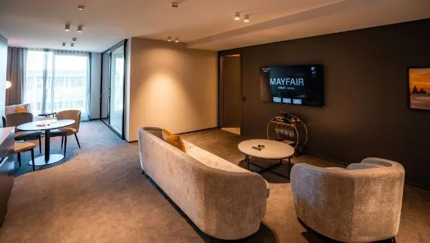 Spanning approximately 52 m², the Mayfair Suite includes a separate living and dining area, a kitchenette, and a private balcony. Featuring luxurious King beds and sophisticated touches, this suite is ideal for guests seeking a spacious and refined urban retreat.