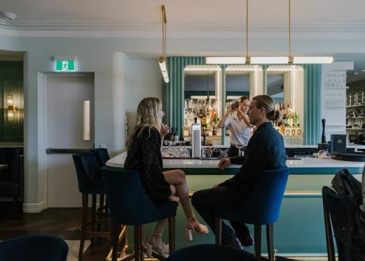 Cocktail bar & kitchen from late afternoon, perfect for pre-dinner drinks with a refined seasonal menu inspired by local produce.