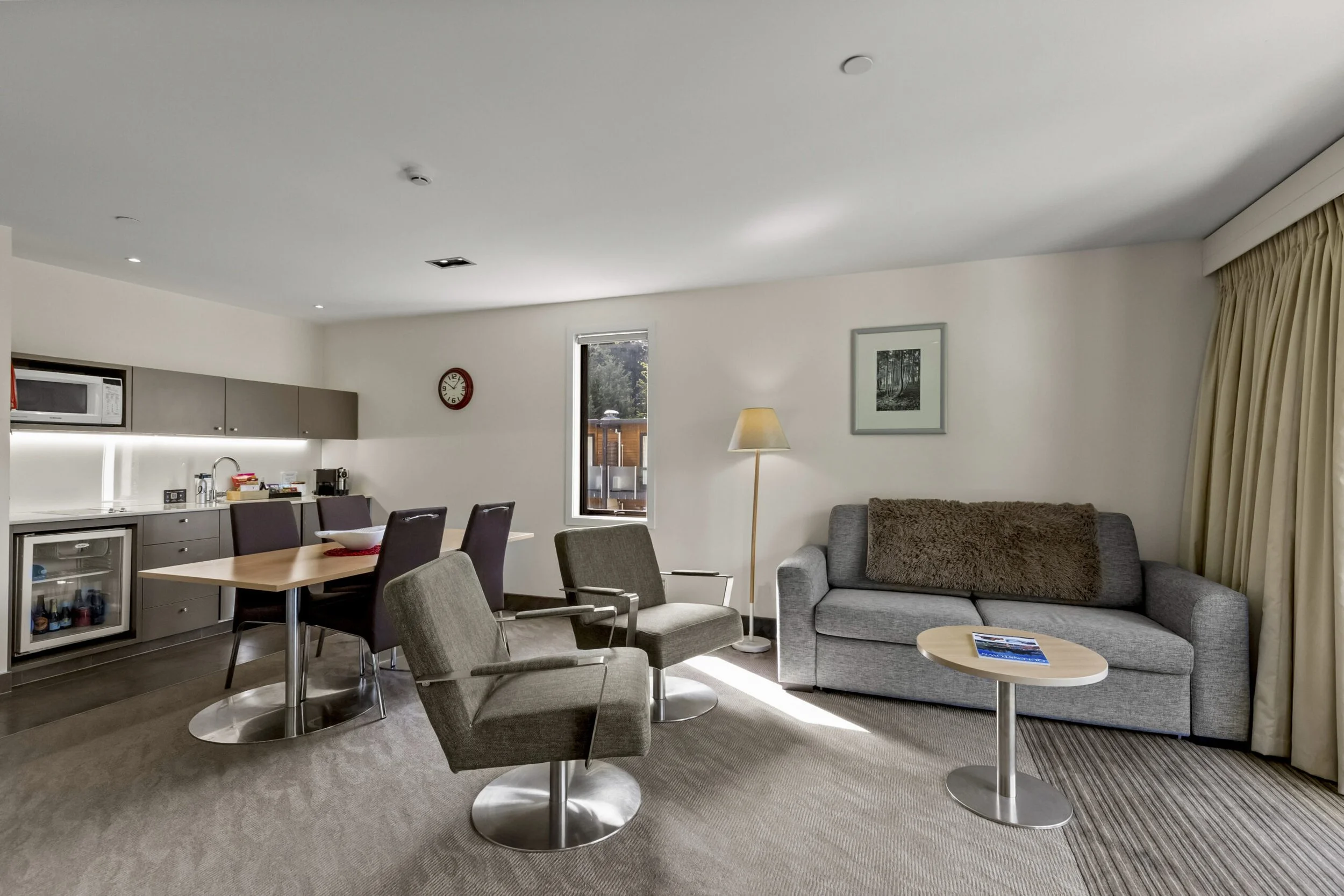 This 52 m² apartment at Novotel Queenstown Lakeside offers a fully equipped kitchen, separate living area, and private balcony overlooking Lake Wakatipu, providing spacious comfort and independence for extended stays or a home-like experience.