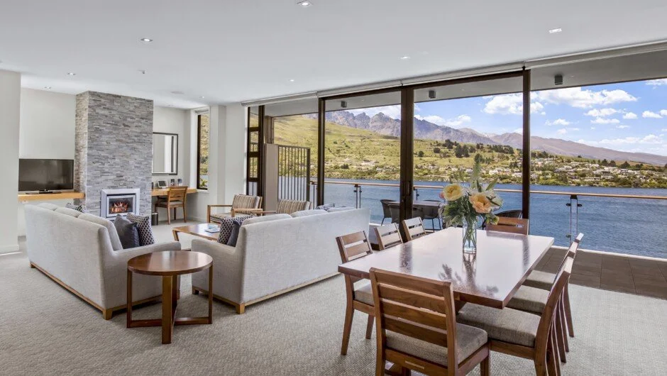 Set high above the water, the Penthouse combines grand entertaining spaces with multiple bedrooms, a designer kitchen, and expansive terraces. Floor-to-ceiling glazing captures sunrise to sunset over Lake Wakatipu, while premium finishes and curated comforts create a private, top-tier retreat for special occasions.