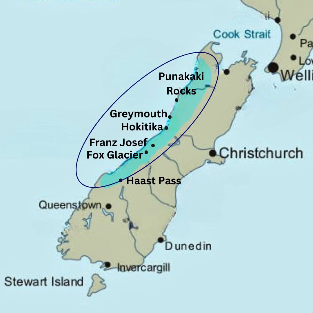 The West Coast coastline is one of New Zealand’s most raw and untouched environments, where rugged ocean meets dense rainforest and dramatic alpine backdrops. Stretching along the Tasman Sea, this remote region offers a constantly changing landscape shaped by powerful weather systems and centuries of natural forces.